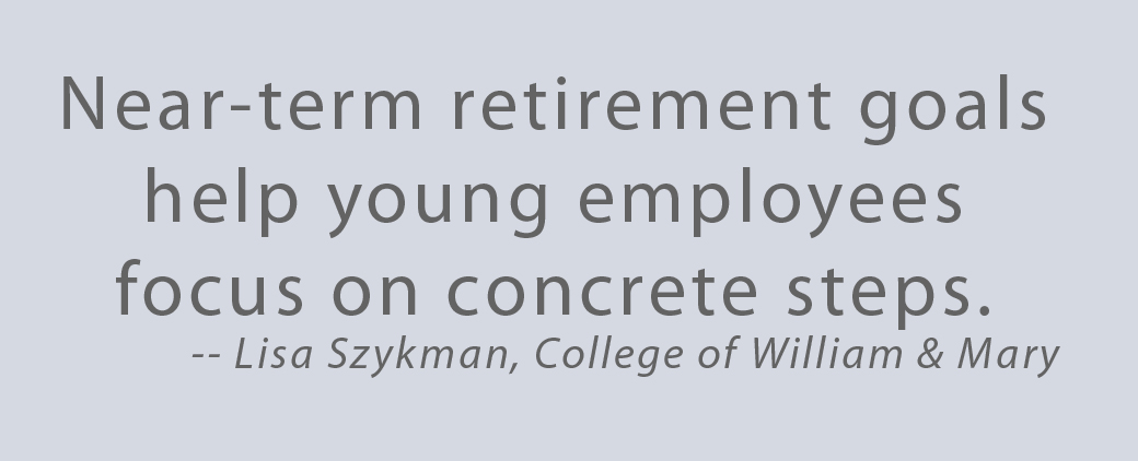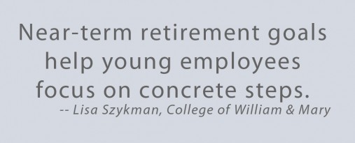 So, how to reach these young adults when it counts? To them, retirement in their 60s is an abstraction – they do not naturally focus on it. According to preliminary research out of the Mason School of Business at the College of William & Mary, how employers communicate may be the key to boosting savings among recent entrants to the workforce, given their long time horizon until retirement.