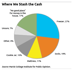The freezer strategy was more popular than socks and mattresses, according to a Marist College survey last month of more than 1,000 people.