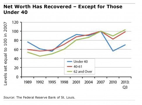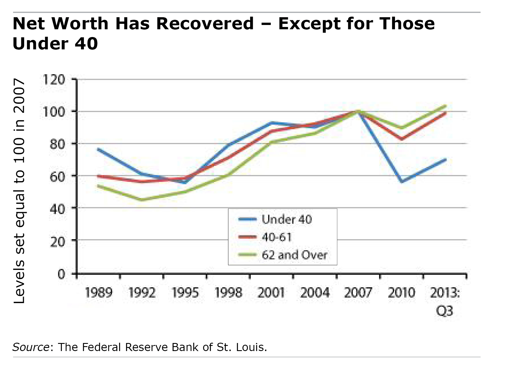 The Federal Reserve Bank of St. Louis, based on its analysis of data from the Survey of Consumer Finances, estimates that the recession has ended for only about one-quarter of the U.S. population – the thrivers, who have paid down their debts and restored their savings. That would leave three out of four Americans who are still struggling. Squared Away interviewed Ray Boshara, director of the Center for Household Financial Stability at the bank; Bill Emmons, senior economic adviser; and Bryan Noeth, policy analyst, for their insights into why most Americans’ net worth – their assets minus debts – hasn’t recovered.