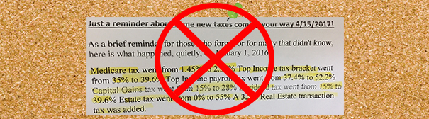 There are nuggets of truth in the misinformation above. The Medicare tax already increased as part of the Affordable Care Act. However, it applies only to employed couples earning more than $250,000 and employed individuals earning more than $200,000. The retirees living in my mother’s very modest senior community – and most working Americans – are not affected. Yet “shocking” information like this rears its head over and over again on Facebook, Twitter and other social media.