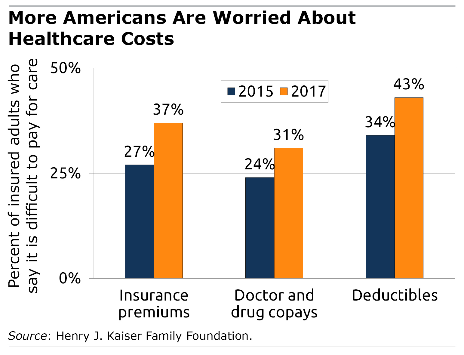 Potential explanations for these concerns, revealed in a new Henry J. Kaiser Family Foundation poll, include rapidly rising prescription drug costs and the fact that employer-provided health insurance plans with high deductibles are far more common than they used to be.