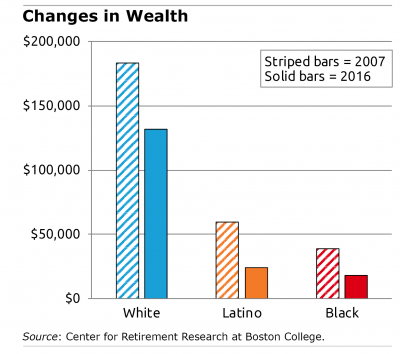 Racial differences in workers’ finances are nothing less than shocking: whites have roughly six times more wealth than Latinos and black-Americans and double the income.