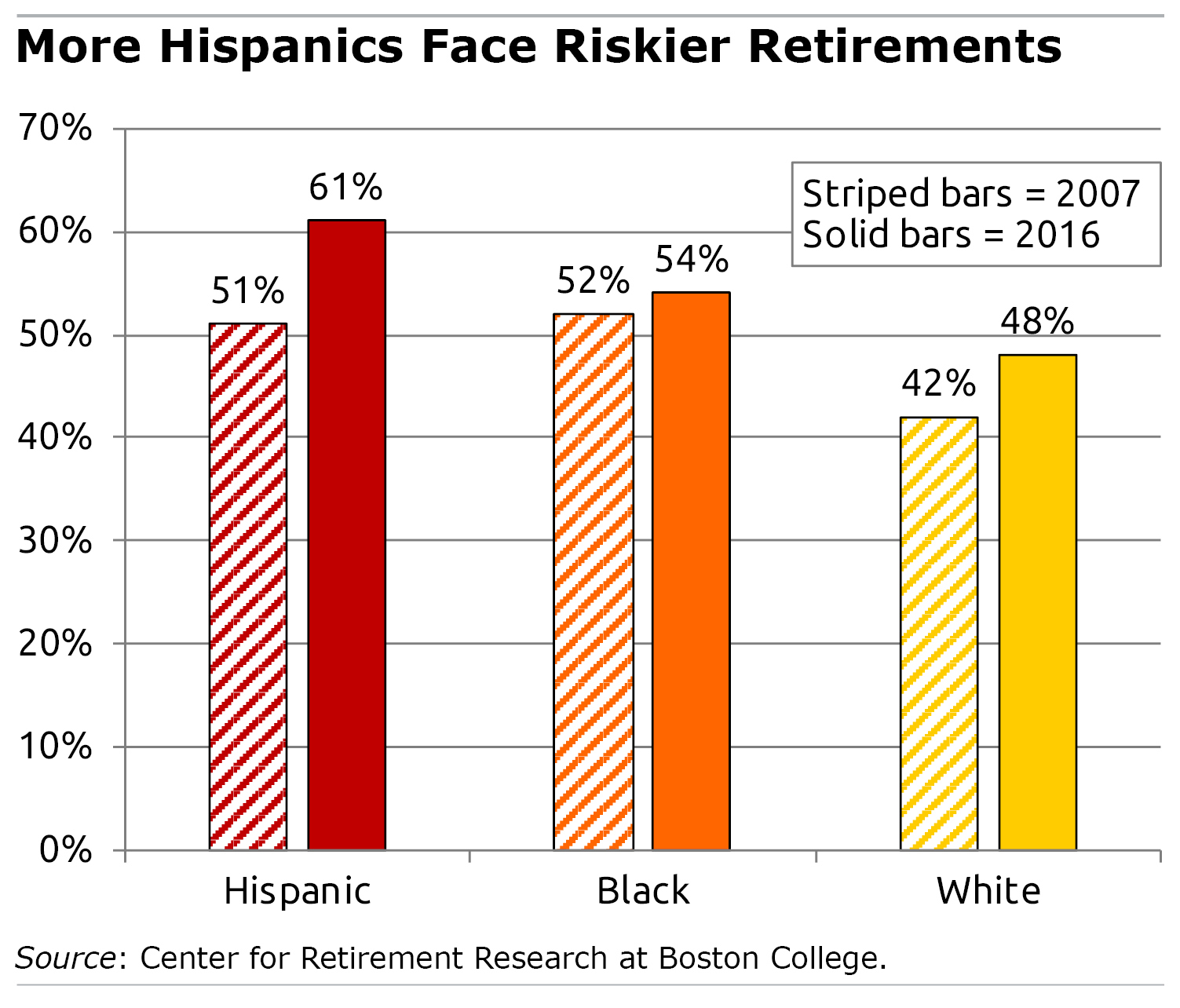 One thing really stood out in a recent study: the deterioration in Hispanics’ retirement prospects since the 2008-2009 recession.