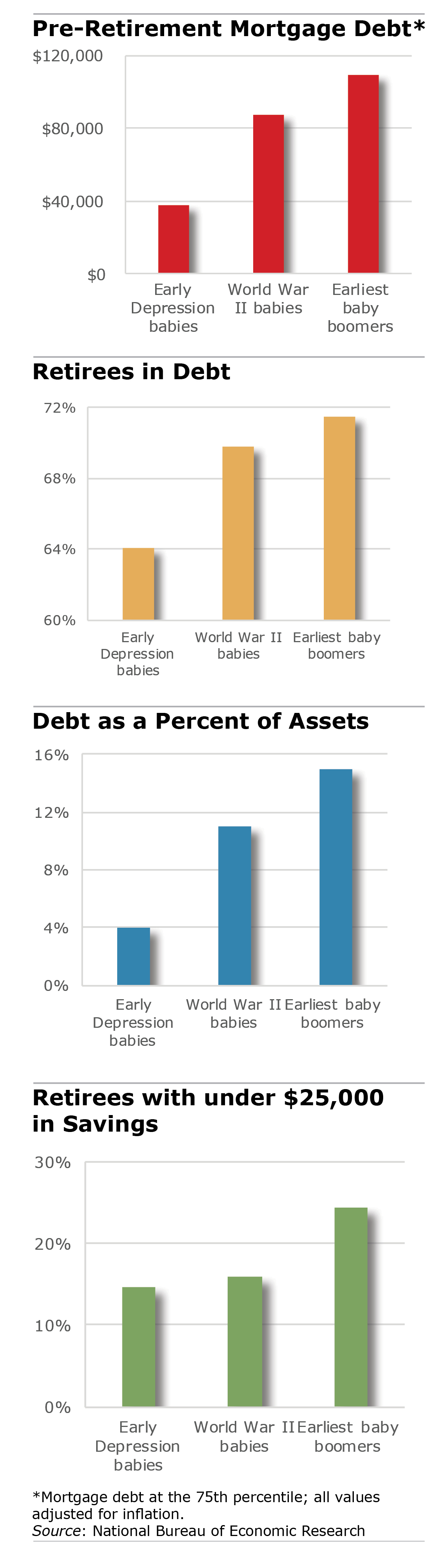 The evidence mounts. Baby boomers who either can work longer or somehow reduce their debt before retiring should do so. If not, they’re taking a big step into the unknown.